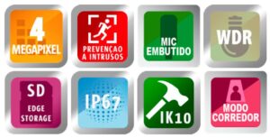 - Imagem de alta qualidade com sensor CMOS de 1/3″ e 4 MP;