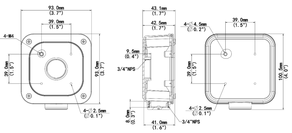 ESPECIFICAÇÕES TÉCNICAS MODELOGERP IP GI-85466AplicaçãoJunction box para câmera mini bullet ( entrada extra no fundo da caixa )Dimensões93.0mm*100.5mm*43.1mm (3.7” x4.0”x1.7”)Peso0.2kg (0.44lb)MaterialLiga de alumínio DIMENSIONAIS INFORMAÇÕES PARA PEDIDOS CódigoDescriçãoPNGI-85466JUNCTION BOX MINI PARA CÂMERA MINI BULLET, BASE QUADRADAMINI JUNCTION BOX BAIXAR CATÁLOGO PDF